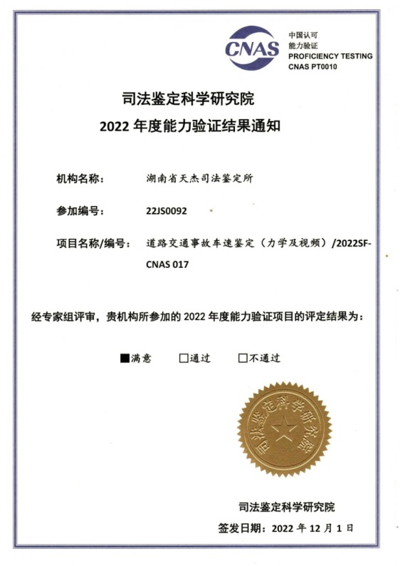 道路交通事故车速鉴定(力学及视频)/2022SF CNAS017